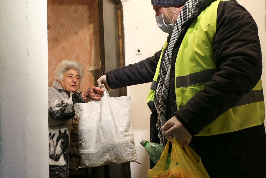 Read moreA volunteer hands bags of groceries to a local resident after the city administration initiated the delivery of food to low-income seniors amid the spread of the new coronavirus in Tbilisi, Georgia, on March 18, 2020. #