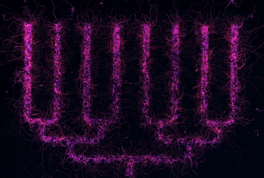 Read moreImage of Distinction: Mouse brain cells grown within a microfluidic maze #