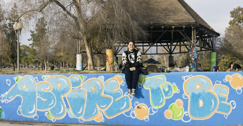 Elizabeth Flores, of Generation Now, on one of the group’s murals