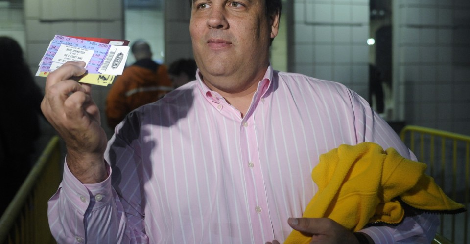 In this month's issue of The Atlantic, Jeffrey Goldberg delves into Garden State Governor Chris Christie's love for fellow New Jerseyan Bruce Springsteen. It's not just political posturing in a state crazy about a local boy made good—Christie has been to 129 shows. "I've spent much of life as a pro-Springsteen extremist, and I've met very few people who love Springsteen the way Christie loves Springsteen," Goldberg writes. "His four children all went to Springsteen shows in utero. He knows every word to every Springsteen song. He dreams of playing drums in the E Street Band." But it's also a conflicted relationship. The two men have very different political philosophies—the Boss is a bard of the left, the governor a hero of the right—and Springsteen won't talk to Christie, despite many overtures.
