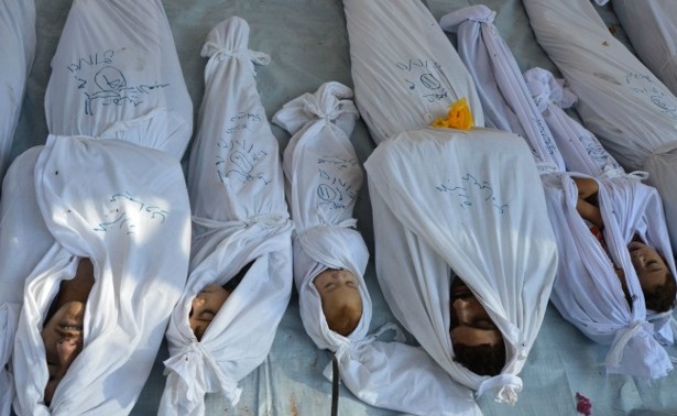 Children lined up in shrouds, their voices forever silenced; devastated mothers and fathers kissing their children goodbye, some pulling the white sheet up tight around their beautiful faces as if tucking them in for the last time. There are no words of condemnation strong enough to capture such infinite cruelty, but where words may fail us action must not.