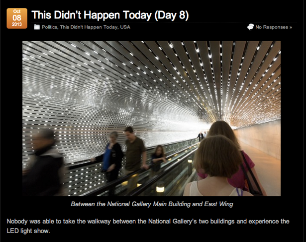 I started to post a picture per day on my normally irregular Blog...Scenes from around DC from sites that are closed due to the shutdown. Nothing shattering...the quality of life that we get to share but which, apparently, is not that important to some.
