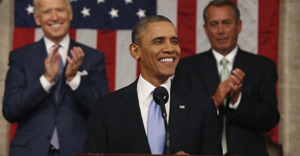 Just like he did a year ago, Obama called on legislators to join him in expanding early-childhood education while promising to work with local officials if Congress wouldn’t join him. He reprised a call to raise the minimum wage to $10.10. He asked Congress to help close the pay gap between men and women, reform the corporate tax rate by lowering rates and closing loopholes, and help protect the environment. These proposals were part of Obama’s new push on inequality, and he framed them as ways to guarantee “opportunity for all” and jumpstart social mobility. The president also once again made the case for his healthcare law. He offered no excuses for its poor rollout but praised its benefits, especially the requirement that insurers cover people with preexisting conditions.