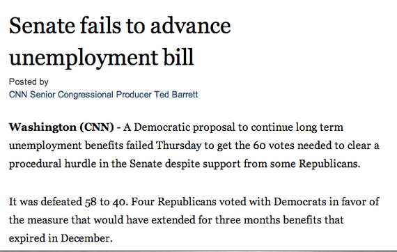 A large majority of the U.S. Senate votes in favor of a measure—in this case, senators representing nearly 70 percent of the U.S. population*. A minority threatens a filibuster to stop it. The majority falls just short of the supermajority needed to get its way. And our leading journalistic institutions tell us that ... the measure "failed."