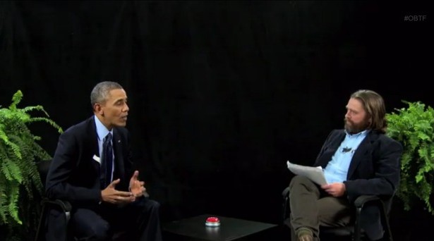 Although more raunchy, the interview is a lot like Galifianakis’s with Obama. In both, the comics instantly undermine their subject’s authority by pretending to be unfamiliar with their names. The difference is that because Obama’s in on the gag, he doesn’t come across as pompous. Instead, he comes across as funny, smart, and self-aware—all of which, ironically, gives him the authority to sell Obamacare to an audience that doesn’t see being president itself as authority enough.