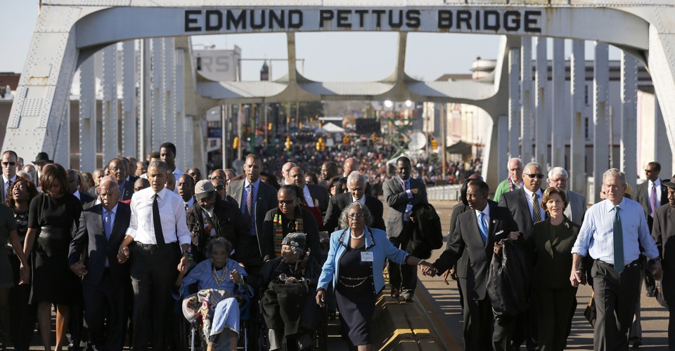I've been in transit or offline all of today and didn't see President Obama's Selma speech in real time. I'm catching up with it now, very late at night, and had a reaction different from the good job/bad job assessment I can't help giving (as a one-time speechwriter) to most political discourse.