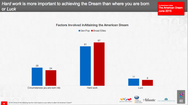 Yet for all their pessimism and division, most people are surprisingly upbeat about their personal lives. Perhaps paradoxically, a majority of Americans also believe that hard work and elbow grease are still enough for ordinary citizens to realize the dream.