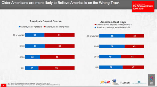 This pessimism is especially prevalent among white and elderly Americans, who overwhelmingly believe that America is on the wrong track …