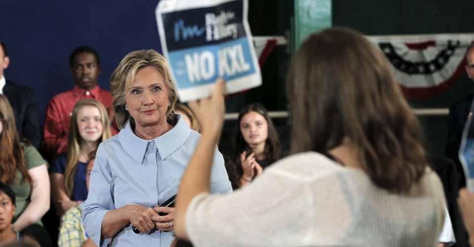 Cynics noted that she made the announcement almost literally at the same time that Pope Francis was arriving in D.C.—a fortuitous choice of timing for a news dump. Clinton may have had little political choice in the matter: Democratic primary voters don’t like the pipeline, and with Bernie Sanders running unexpectedly well against her, she’s being tugged to the left on a variety of issues.