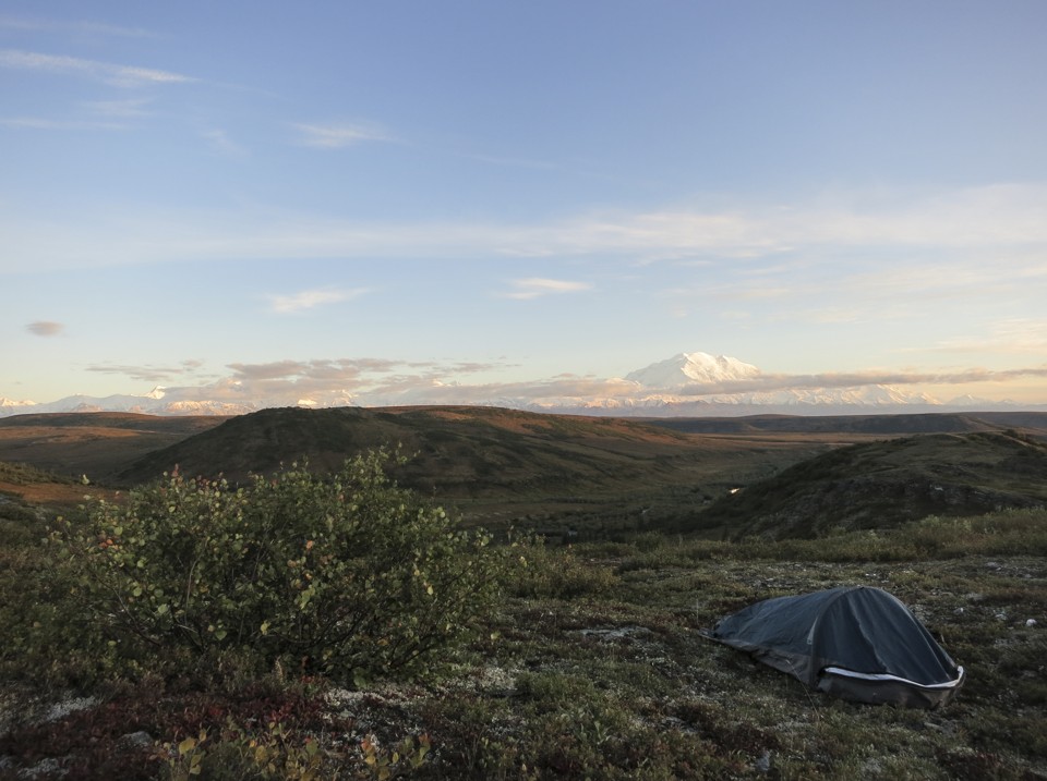 A couple of years ago, I woke to three birds circling over my body, barking. I’d been sleeping in a bivouac, a kind of raincoat for a sleeping bag, camped in the tundra of Alaska’s Kantishna Hills. I unzipped the bivouac and popped my head out, peering up as the eerie silhouetted birds swooped toward me. The moon was a low and yellow sliver in the eastern sky; clouds to the northwest stacked in electric oranges and dark purples.