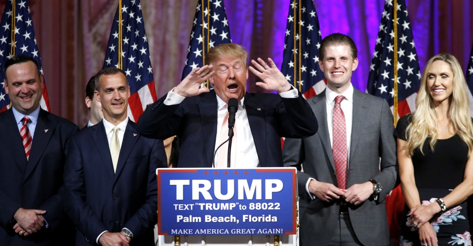 After his very good night Tuesday, including a huge victory in Florida, Trump could indeed wrap up the party nomination before July, or be so close to the magic 1,237 delegates that it would be impossible to deny him the nomination. One of the two major parties would then be led by a man noted for his divisive, taunting and dangerous language, his extreme proposals on immigration and trade, his lack of knowledge about even basic public policies—and a set of ideas, on Social Security, Medicare, health reform and Planned Parenthood at odds with the entire Republican Party platform and nearly all of its members of the House and Senate. No doubt, most of those members, along with the other presidential candidates and party nabobs, would dutifully get behind their nominee—the mantra is “Anyone would be better than Hillary Clinton.” But that would mean not only forfeiting a chance to broaden the party base beyond a core of working-class white voters, but also creating irresolvable dissonance between the standard bearer and the party hierarchy, even greater than that between Barry Goldwater and the then-moderate GOP establishment in 1964.