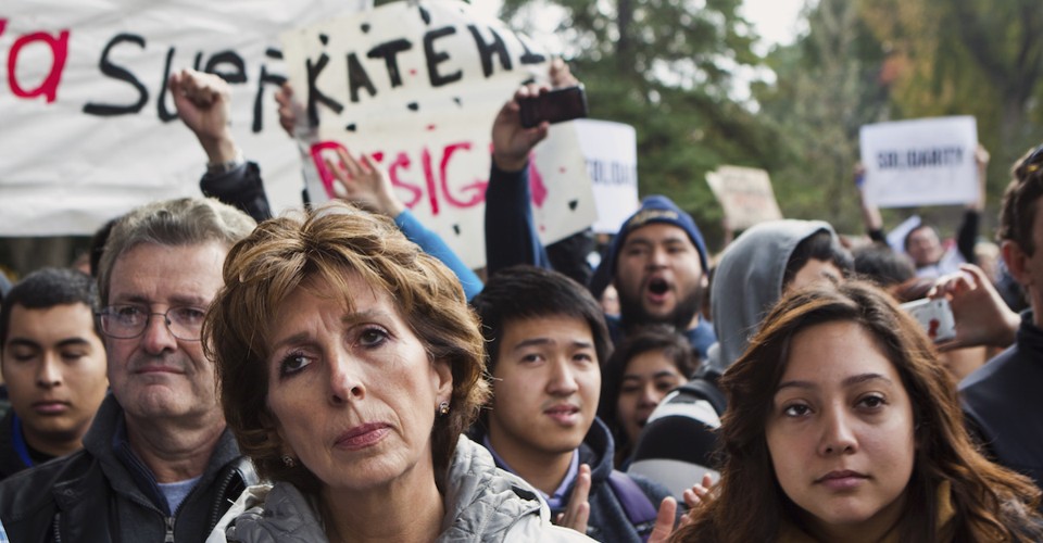 Calls for her resignation persist in part because of her record at Davis. Katehi began to lose the confidence of students in 2011, when a group of peaceful undergraduates, assembled lawfully on a campus quad, was brutally pepper-sprayed at point-blank range by a UC police officer. “I take full responsibility for the events,” she said back then, amid other calls for her resignation. “I really feel horrible for what happened,” she told a large crowd that gathered days later at a campus rally, adding “I don’t want to be the chancellor of the university that we had on Friday.”