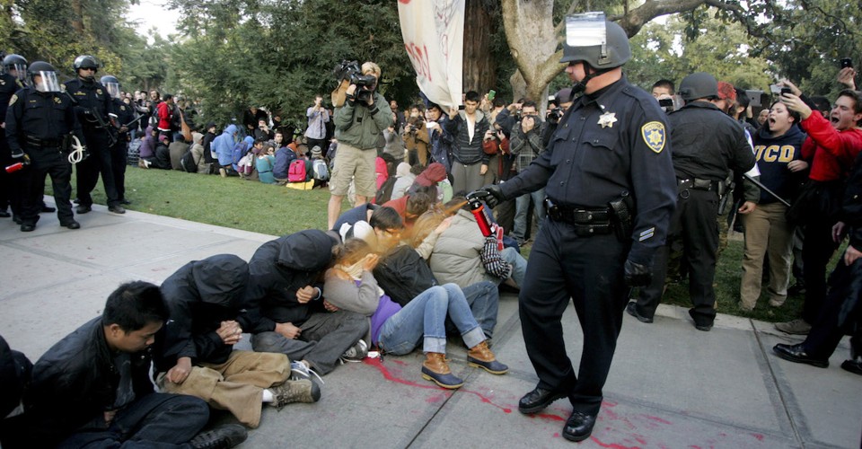 Back in 2011, when Occupy Wall Street protests roiled dozens of college campuses, I published a series of articles about an egregious instance of police brutality at UC Davis, where Lieutenant John Pike, acting under ambiguous orders from superiors, used an unapproved pepper-spray device to chemically assault student activists, who were assembled peacefully and lawfully on a campus quad during the daytime.