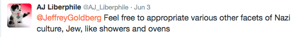 I include this one as an example of the juvenile approach many Twitter anti-Semites take. I’m hoping the ADL identifies some of these trolls, and let’s us know how old they are.