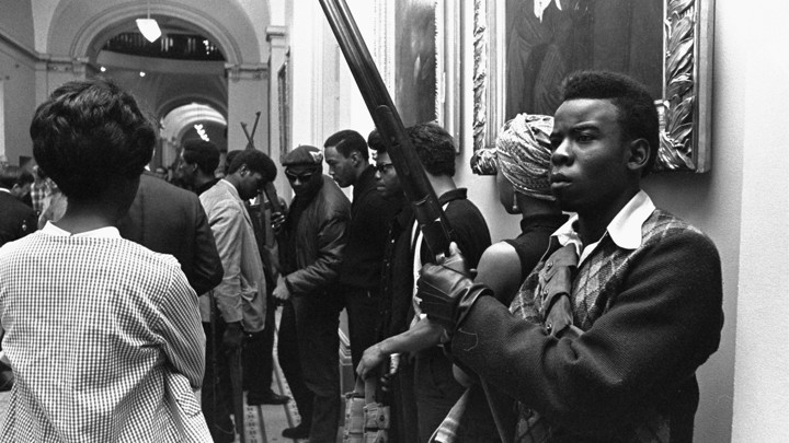 In 1967, Black Panthers began taking advantage of California laws that permitted open carry, walking the streets of Oakland armed to the teeth, citing threats of violence from white people and particularly white cops. When people were pulled over, Panthers would arrive on the scene—to ensure that justice was done, they argued, or to intimidate the cops, the cops contended. In response, Republican state Assemblyman Don Mulford introduced a bill to ban open carry. The Panthers then decided to go to the state capitol, heavily armed, to exercise their right.