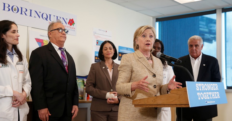 Clinton spoke from Miami’s Borinquen Medical Center, which she toured with Carlos Gimenez, the Republican mayor of Miami-Dade County. The center is close to ground zero for local transmission of Zika in the United States, the city’s Wynwood neighborhood. Just before she began speaking, the number of total locally acquired cases ticked up to 21: Florida Governor Rick Scott announced four more cases of Zika in Wynwood.