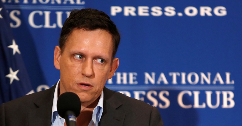 Admittedly, Thiel has always been an odd bird, with his passion for, as he called them Monday, “fringy” causes (seasteading, anti-aging measures, the development of a civilization-altering artificial superintelligence somewhat creepily known as The Singularity…). And Thiel’s libertarian political leanings led him to back the decidedly fringy Ron Paul in both the 2008 and 2012 presidential races.