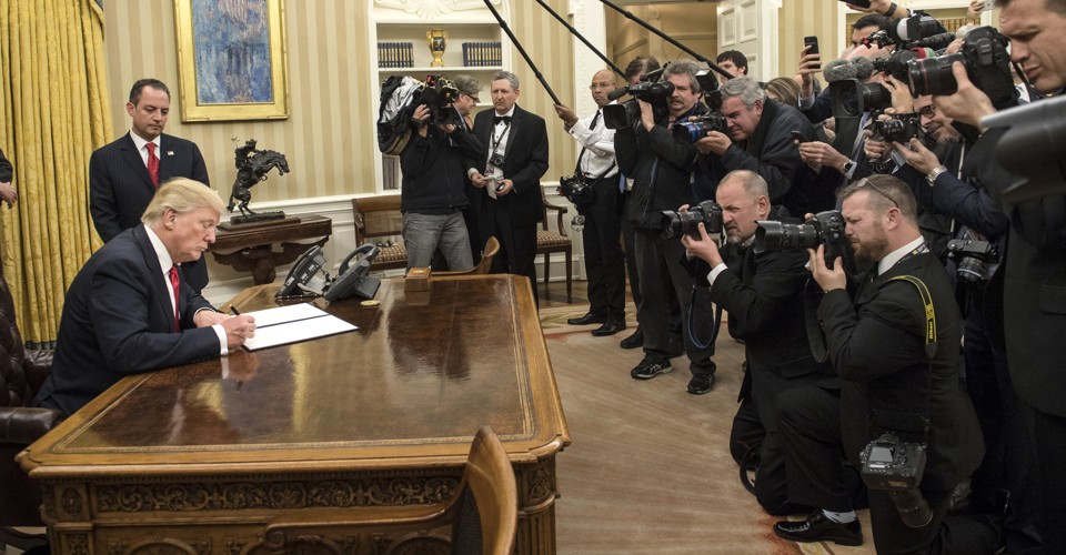And like his inaugural speech, Trump’s proclamation is devoid of history. He does offer a mention of the Constitution. But while Obama often tried to broaden what it means to be an American by weaving the traditional veneration of the Founding Fathers together with other moments of American triumph, such as the civil-rights movement, Trump leaves what “patriotism” means up to interpretation. That, and the fact that the proclamation was timed to his own inauguration, led critics to suggest it means devotion to Trump himself, the defender of those “sacred values and heritage,” the rightful successor to a president whose legitimacy he never really stopped questioning.