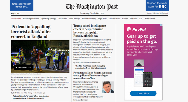 Here is the Washington Post web site as it appeared late Monday night: