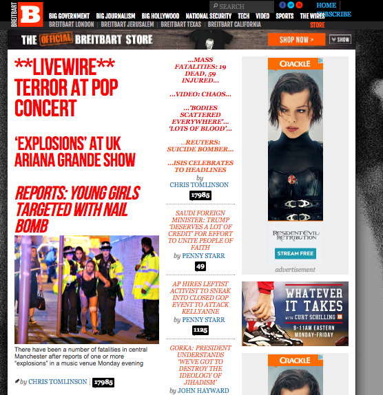 Now compare the Washington Post to Breitbart: