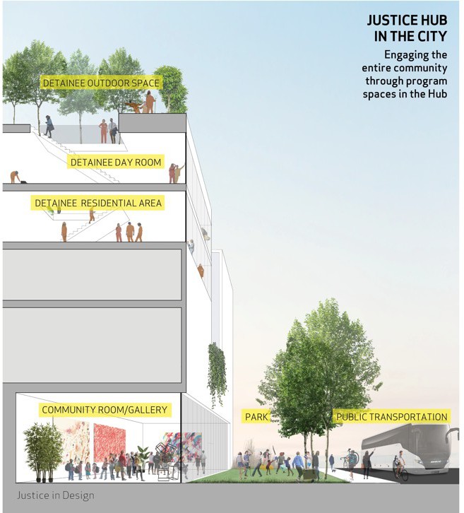 The team hopes that this justice hub model inspires local jurisdictions to rethink these institutions and their role. It’s scalable to other cities, and elements might even be adapted to rural towns, which have now become the epicenters of bloated jail populations. In the struggle to chip away at mass incarceration on many different fronts, design has a role to play, van der Leer insists.