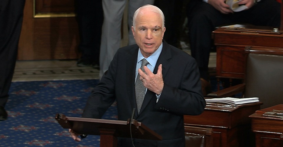 He voted to keep alive a bill opposed not by some but by all major medical-professional and health-related groups. A bill that an organization of nuns called “the most harmful legislation to American families in our lifetimes." A bill with absolutely no across-the-aisle Democratic amendments, as compared with well over 100 Republican amendments in the original Obamacare plan, and with virtually no open hearings or debates. A bill whose support level in opinion polls is roughly half that of Donald Trump himself. A bill—well, the litany is familiar, all leading up to the point that it’s a bill that John McCain could have chosen to stop yesterday, and didn’t.