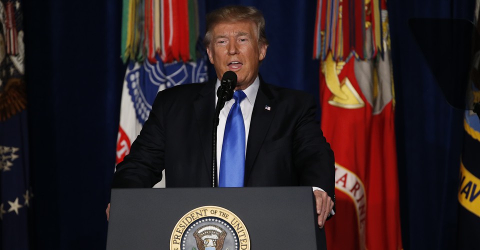 I’ve already lifted restrictions the previous administration placed on our warfighters that prevented the secretary of Defense and our commanders in the field from fully and swiftly waging battle against the enemy. Micromangement from Washington, D.C., does not win battles. They’re won in the field, drawing upon the judgment and expertise of war-time commanders and front-line soldiers acting in real time with real authority and with a clear mission to defeat the enemy. That’s why we will also expand authority for American armed forces to target the terrorists and criminal networks that sow violence and chaos through Afghanistan. These killers need to know they have nowhere to hide, that no place is beyond the reach of American might and American arms. Retribution will be fast and powerful as we lift restrictions and expand authorities.