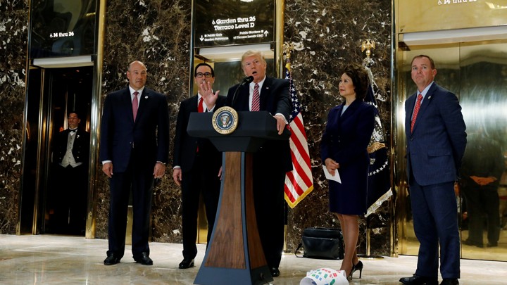 Trump also addressed swirling rumors about the status of his chief strategist, Steve Bannon, who has come in for another round of speculation this week that his job may be in danger. Trump is reportedly angry about the recent book Devil’s Bargain, by the Bloomberg Businessweek writer Joshua Green, which portrays Bannon as the key reason for Trump’s election victory.