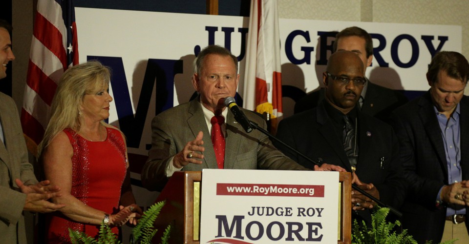 Moore also benefited from favorable internal dynamics in Alabama, where he has a devoted base, has been a known quantity for years, and which formed the launching pad for his national notoriety as the “10 Commandments Judge” because of his battle to keep a monument to the 10 Commandments at the state’s supreme court. He has also long been a supporter of Trump-like positions even before Trump, such as opposing Muslim congressman Keith Ellison’s using a Koran to be sworn in, and questioning where Barack Obama was born.