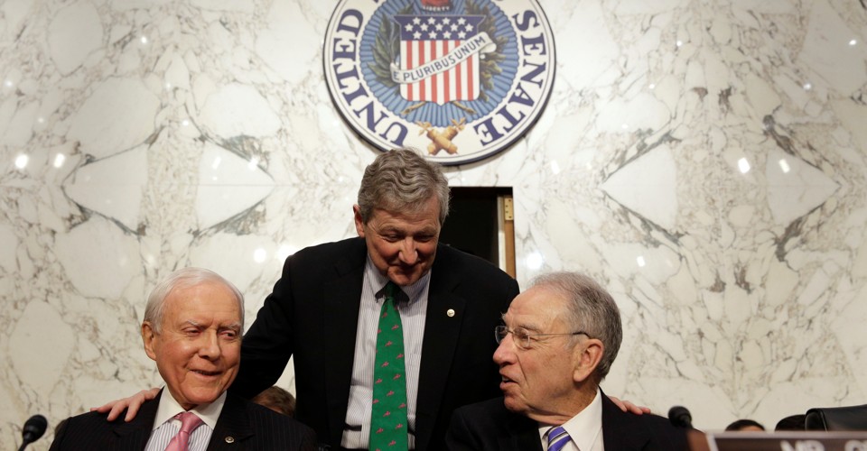 Then, on Thursday, Senator Sheldon Whitehouse, a Democrat from Rhode Island, shared a clip from a Judiciary Committee hearing on Wednesday. In the video, which went viral, Senator John Kennedy, a Louisiana Republican, dismantled Matthew Petersen, another district-court nominee. In his first year in Washington, Kennedy has established himself as one of the best and quirkiest questioners in the Senate, displaying an unassuming “country lawyer” approach that bears more in common with Sam Ervin than Kennedy’s contemporary namesake.