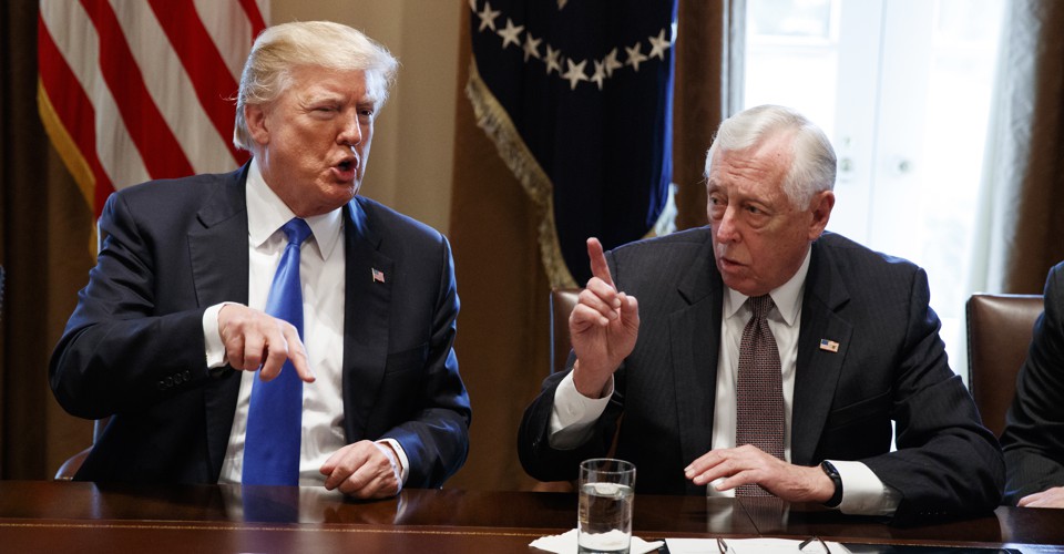 The conversation proceeded in that vein for another half hour. Trump would muse about his desire for a bipartisan deal that would be a segue into the kind of sweeping immigration that eluded his two predecessors in the White House, and one lawmaker after another would gently try to bring him back to Earth. At one point, a sullen Representative Steny Hoyer of Maryland, the Democratic whip seated next to Trump, just threw up his hands. For Republicans, the spectacle allowed the public to see what they often privately complained about during the health-care debate—an inconsistent president who would change his mind from one conversation to the next and leave everyone feeling he agreed with their position.