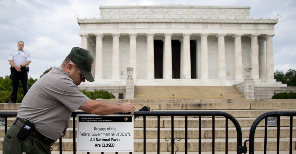 When conservatives in Congress refused to fund the government in 2013, among the first and most visible victims were tourists who had planned trips to national parks, museums, and monuments. Vacations were ruined and weddings cancelled. The Obama administration even placed barricades around memorials on the National Mall, infuriating Republicans who accused the president of maximizing inconvenience to stoke the public’s anger at Congress.