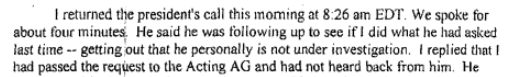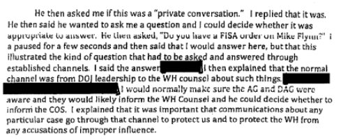 Although Comey’s answer is redacted, some copies of the memos revealed the answer, which was yes, when text is highlighted: