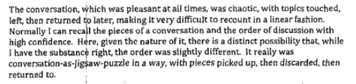 Over time, the nation has become somewhat acclimated to the president’s unorthodox speaking style, though he retains the ability to surprise here and there. But Comey’s memos show the FBI director struggling to understand the new president, especially as a contrast to other presidents under whom he had served. This is an evocative description of Trump’s conversational mien, and just how incomprehensible it seemed at the time: