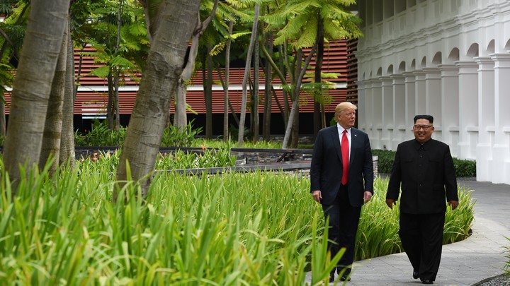 Monday evening, as Donald Trump and Kim Jong Un met in Singapore, ABC briefly preempted its popular show The Bachelorette to convey the important news. Some viewers were miffed, but they might have noticed some similarities between the two shows, from the pageantry to the semi-scripted, uncanny quasi-reality. And then there was President Trump himself, who, in his comments following his meetings with the North Korean supreme leader, sounded like a smitten contestant on the dating show.