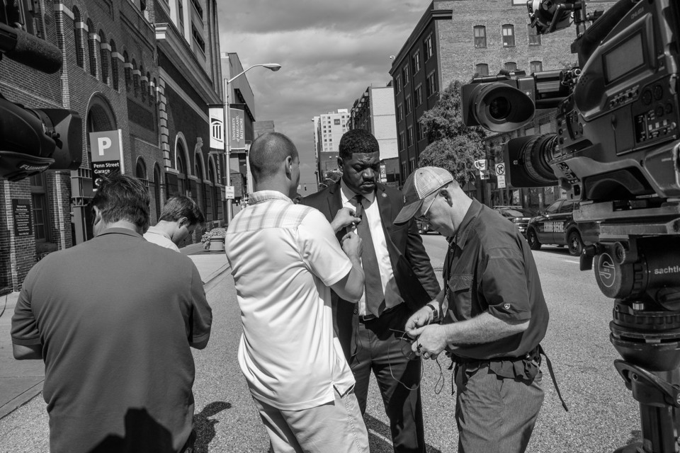 Three days after his brother’s killing, Smith was at home when he received a call from Commissioner Davis. Reporters had been reaching out to the department for comment on Dionay’s death; the commissioner hadn’t said anything so far, and he asked for Smith’s input about how to handle the inquiries. Smith had already announced the news in a Facebook post—“A coward with a gun, entered my brother’s apartment and shot and killed him”—but he felt it was important to address the people of Baltimore face-to-face. “I’ll be in in an hour,” Smith responded.