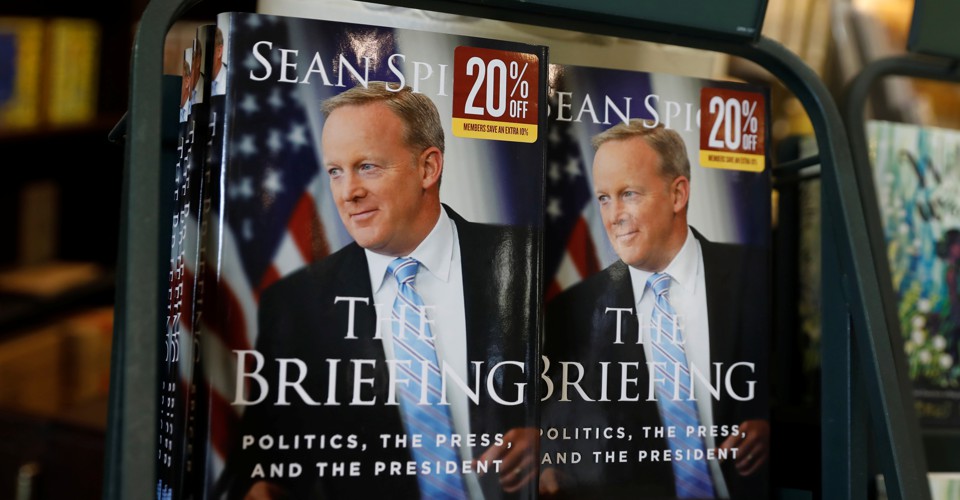Of course, outside the party, the coverage of his book had been less than glowing. During an interview with the BBC, a host had flatly told Spicer, “You have corrupted discourse for the entire world by going along with [Trump’s] lies.” And in a Wall Street Journal review, the journalist Jonathan Karl had written that Spicer’s book was “much like his tenure as press secretary: short, littered with inaccuracies, and offering up one consistent theme: Mr. Trump can do no wrong.”