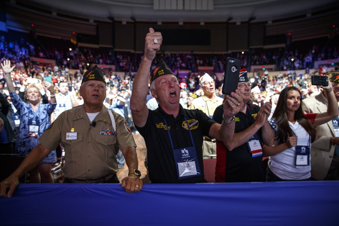 Trump attacked Democrats and leveled criticism at the media in his address before the Veterans of Foreign Wars convention in Kansas City, Missouri.