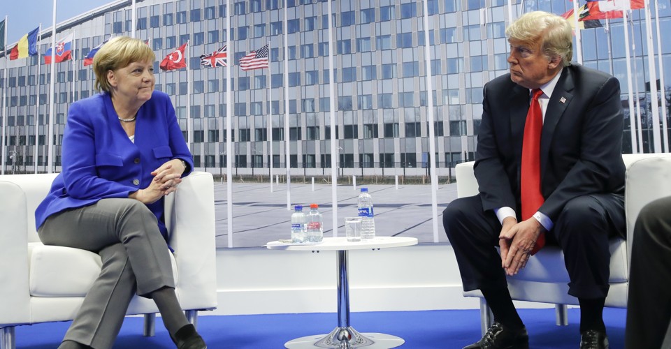 President Trump joined 28 other leaders in signing the NATO declaration, reflecting months of negotiation. Earlier in the day, Trump accused Germany of being a “captive to Russia” because of an energy agreement with the country and urged allies to increase their military spending.