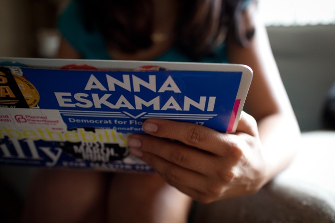 Eskamani has the concession text saved as a Google doc, but she’s optimistic she won’t have to use it. She’s running for Florida’s 47th state House district, in the Orlando area. The seat is open—the incumbent Republican, Mike Miller, is trying for a promotion to the U.S. House—and it’s closely divided. Miller won the seat from a Democratic incumbent by about 2,000 votes in 2014, but Hillary Clinton won the district in 2016.