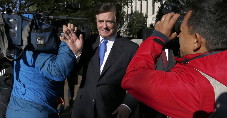There’s nothing passive about Manafort’s presence in court. He is constantly turning to his lawyers, whispering them his thoughts, just as he might turn to an aide perched over his shoulder. He consults with lawyers on strategy, passing them notes scribbled on a yellow pad. After a lawyer returned a note, he carefully tore it up and submerged it in a coffee cup.