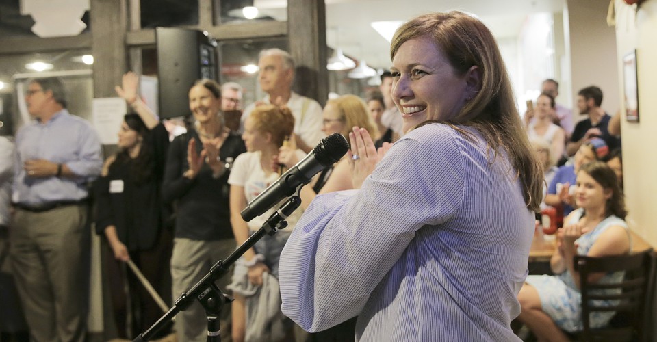 Fletcher stood on a step stool at the front of the room. The 43-year-old cuts an unconventional profile in the Seventh—female, liberal, inexperienced. Any one of those descriptors should be a nonstarter in this district, which a handsome blue blood named George H. W. Bush first turned Republican in 1966. That Bush has had only two successors in nearly five decades—both white, conservative men—appears testament to that fact.