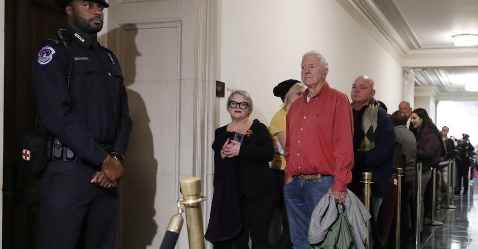 With the public phase of the impeachment inquiry starting last week and continuing into this one, throngs of people—young and old, mostly Democrats—have waited outside the room every day to try to get a seat to see the hearings in person. Many of them had traveled very long distances to watch the California Democrat and other lawmakers on the House Intelligence Committee question a number of witnesses. Why were they there? Almost all of them used the phrase “democracy in action.”