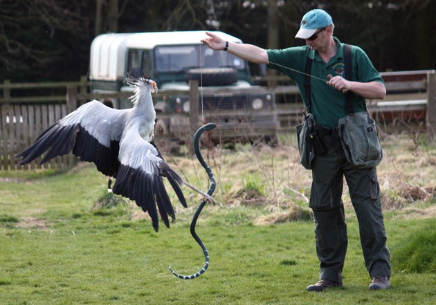 Steve Portugal learned that the hard way when studying secretary birds—a long-legged bird of prey with an appetite for snakes and a phenomenal, skull-crushing kick. “Their desire to kick anything that moves and looks a bit like a snake is so innate,” says Portugal. “At the end of a session, I had this long extension lead and I started wheeling it in. Within a fraction of a second, the bird was on it and going mental, trying to kick the extension lead to death. It felt like I was playing with a cat.”