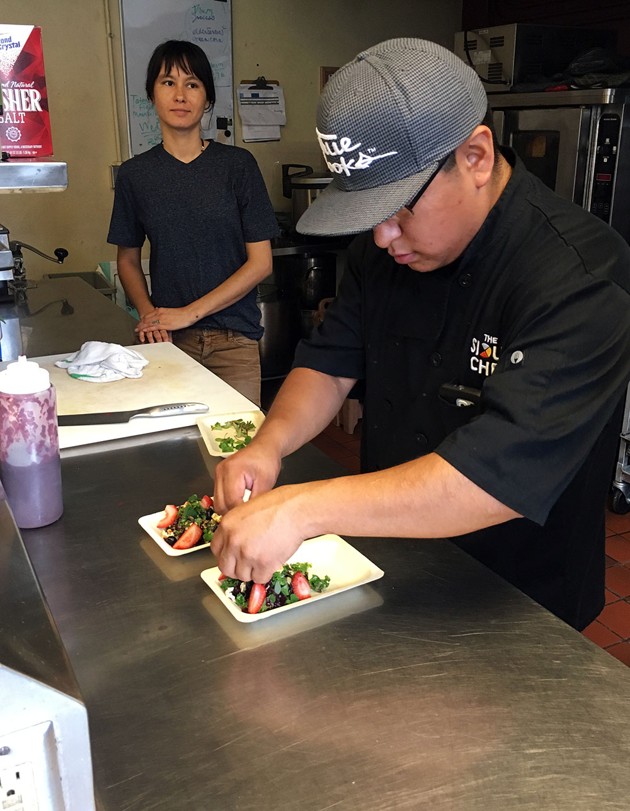 of the Sioux Chef preparing a salad.