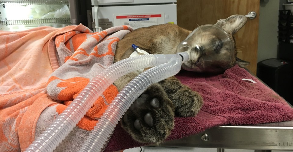 Her breath had been crackly, gurgling in the front seat on the way over, Lotz said. Pumas are the largest cats that can purr, but this wasn’t the sound of a comfortable kitten.