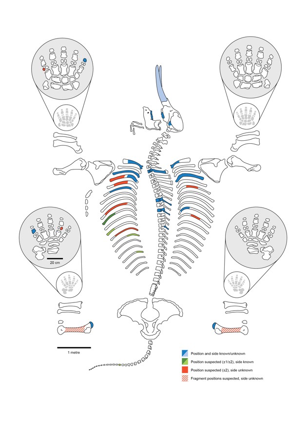 A schematic of the Cerruit mastodon, showing recovered bones and teeth. Dan Fisher & Adam Rountrey, University of Michigan.