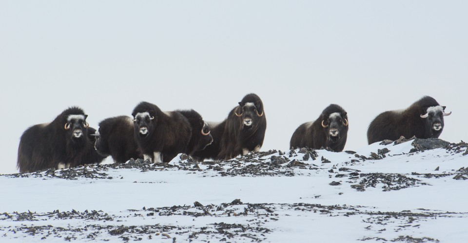 It was part of her job. Through the winter, she regularly went to check in on animals that she and her fellow researchers had outfitted with radio collars the year before. On this particular flight, she quickly found what she was looking for: a pack of 55 musk oxen moseying along in the snow. From the helicopter, Johnston could detect all four radio collars chirping happily—the “alive” signal.