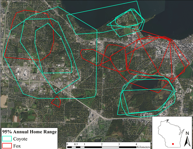 Since asking the public to help track Madison’s wildlife in 2014, Drake and his team at the Urban Canid Project have received similar anecdotes, with coyotes and foxes coming near each other, but without any incident. Perhaps nothing remarkable to the average observer, but as Drake will tell you, “There’s something unusual going on here in the city.”