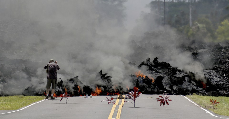 Pele’s presence is always felt on Hawaii’s Big Island—Kīlauea has been erupting continuously since 1983. But rarely is it felt as much as it is right now. A cocktail of molten rock, gas, and steam is being forced up through the ground in parts of the island’s Puna district, creating 15 fissures as of Thursday morning. Toxic volcanic gas is spouting out of cracks and vents; lava is cutting across roads and burning trees and infrastructure; dusty-rose plumes of ash are muddying the already murky sky. Geologists are now predicting that Kīlauea will experience an explosive eruption in the coming weeks, potentially ejecting “ballistic rocks.”